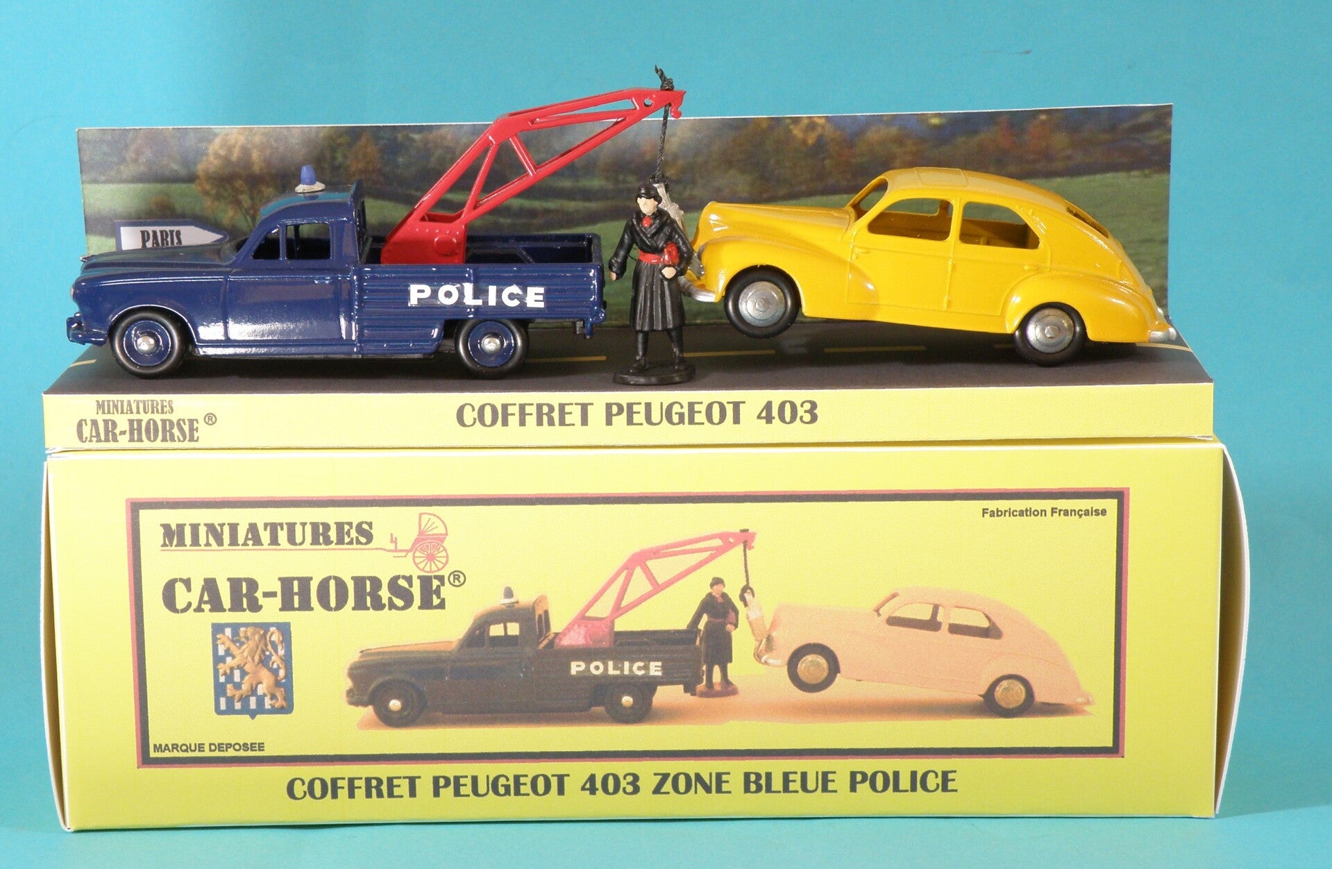 Monsieur Gicquel Coffret Peugeot 403 police Zone bleue avec Peugeot 203 berline jaune